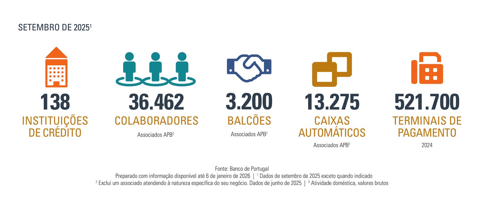 A Associação Portuguesa de Bancos (APB) representa o sector bancário em Portugal, promovendo o desenvolvimento, a confiança e a integridade do sistema financeiro. Saiba mais sobre o nosso trabalho na construção de um sector financeiro mais forte e transparente, no apoio a famílias e empresas e na promoção do desenvolvimento económico e social do país.